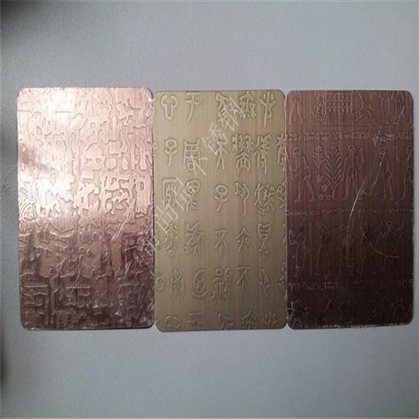 1)采用德國先進水鍍技術,使不銹鋼表面鍍上一定厚度的真紫銅,紅銅,黃銅。達到能做舊拉絲仿古高端裝飾,解決了以往銅鋼復合板材料由高分子膜復合易分離、起泡的缺點。